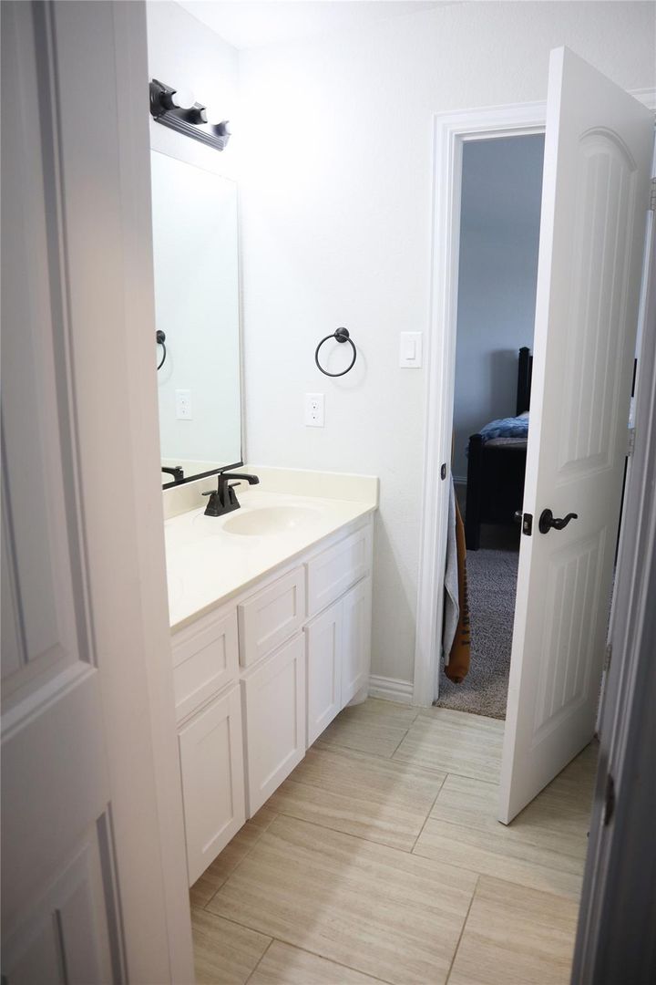 Room to S P R E A D out! This gorgeous home has 6 bedrooms with 4 full baths in the heart of Keller ISD. It features an updated and modern feel with upgrades throughout. This corner lot with a 3-car garage is spacious for kids and pets. The incredible floorplan includes a formal dining area, family room, game room and media room. It features an oversized home office with a sliding barn door and a full wall of built-in shelving. Great for a mother-in-law or nursery, this home has a bedroom downstairs with direct full bathroom entry. The kitchen is an open design with a farmhouse sink, subway tile backsplash, SS appliances, double oven, butler’s pantry, gas cook top, huge center island with breakfast bar. The master bath has a jetted tub, lovely shower, and dual sinks. The media room has 2 tiers and is wired for 7.1. The flooring is stunning and durable with wood tile throughout the downstairs. Plantation shutters throughout the entire home provide perfect shade in the afternoons. The home has an oversized patio perfect for entertaining. The French drain system installed by Andy's Sprinklers provides efficient and quality drainage. Plantation shutters through out the whole house! The upgrades are endless! HOA Dues and lawn care included.